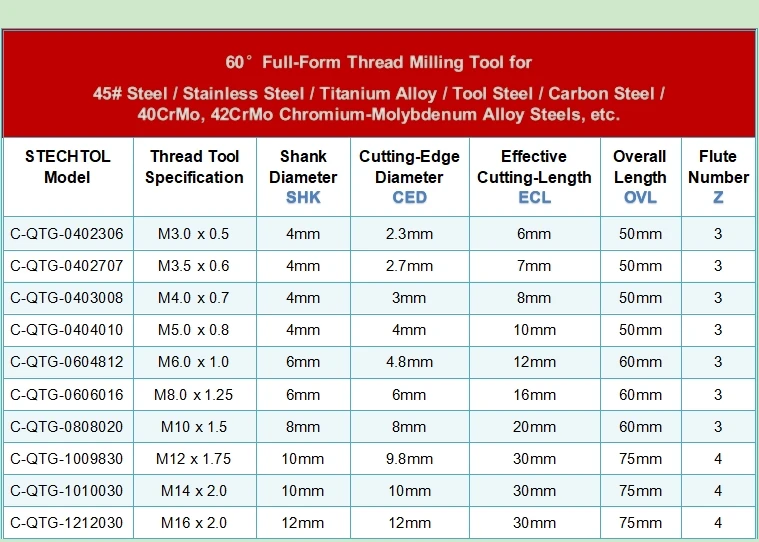 60 HRC Full-Tooth Carbide Thread Milling Tool